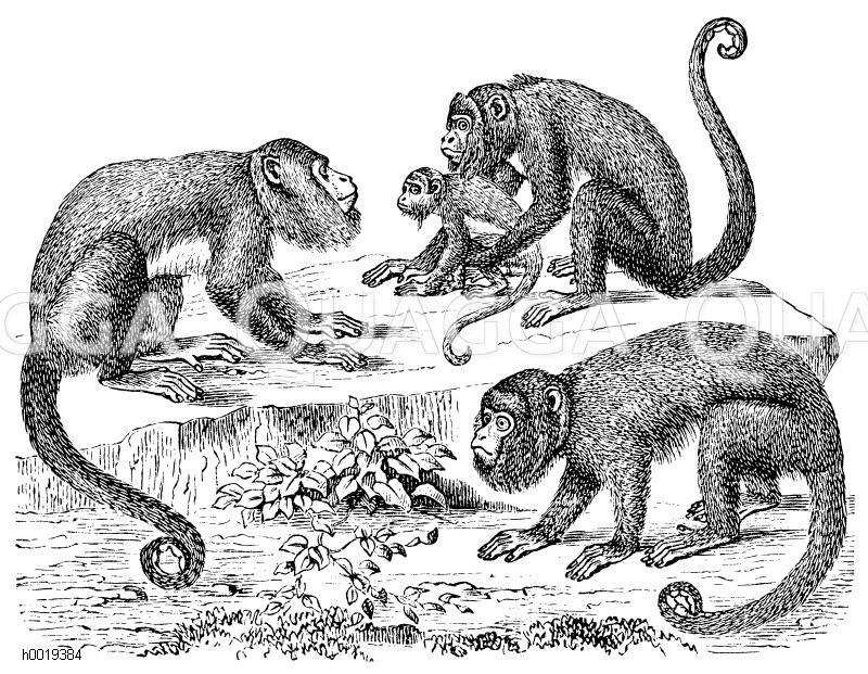 Brüllaffen: Zeichnung/Illustration/Holzstich – – –
