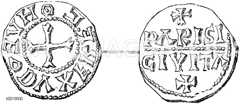 Capetingische Münze aus der Zeit Hugo Capets: Zeichnung/Illustration/Holzstich – – –