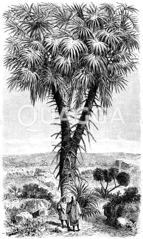 Dompalme: Zeichnung/Illustration/Holzstich – Cucifera thebaica Del. – –