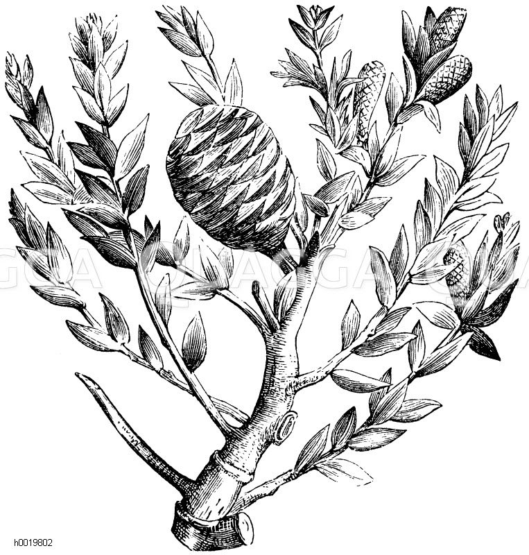 Dammarfichte: Zeichnung/Illustration/Holzstich – – –