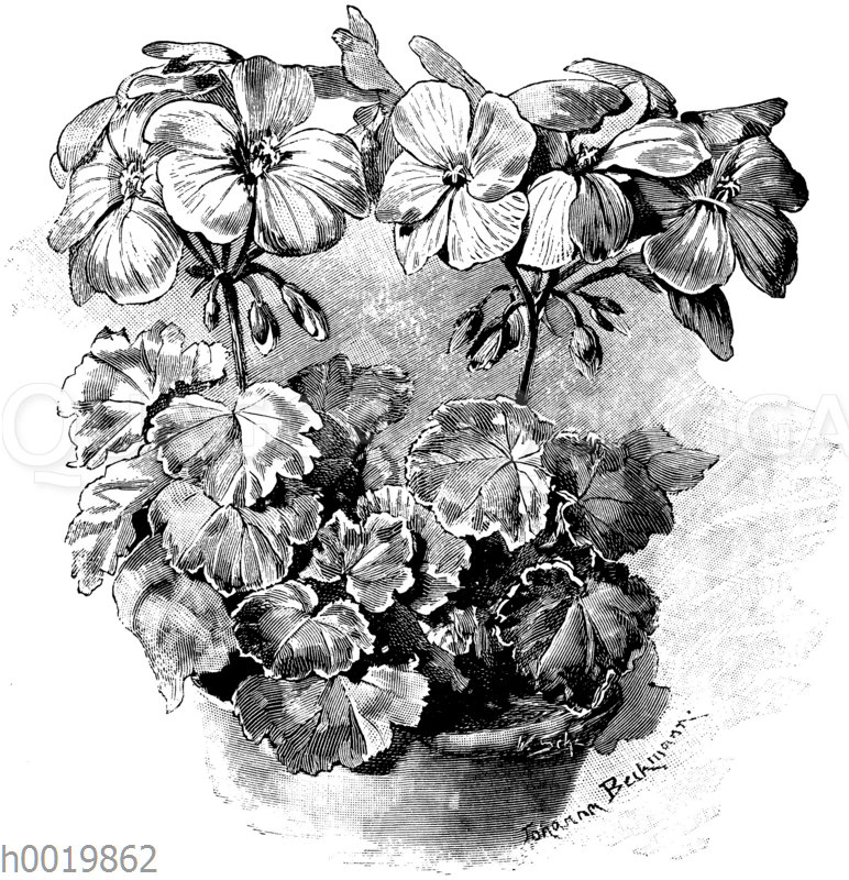 Teppich Zonalpelargonie: Zeichnung/Illustration/Holzstich – – –