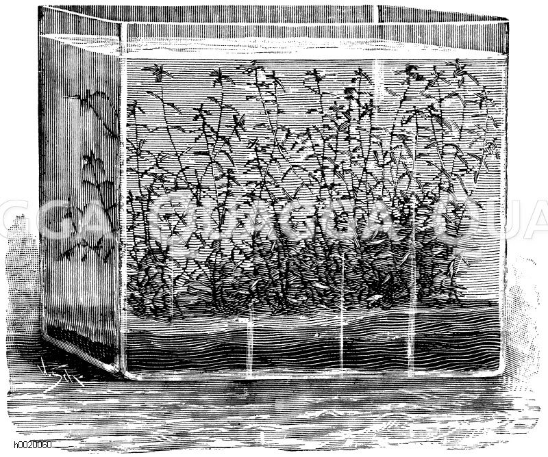Frühlingswasserstern in einem Aquarium: Zeichnung/Illustration/Holzstich – Callitriche verna – –