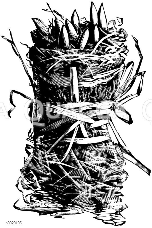 Fertiges Moosbündelchen mit Treibkeimen: Zeichnung/Illustration/Holzstich – – –