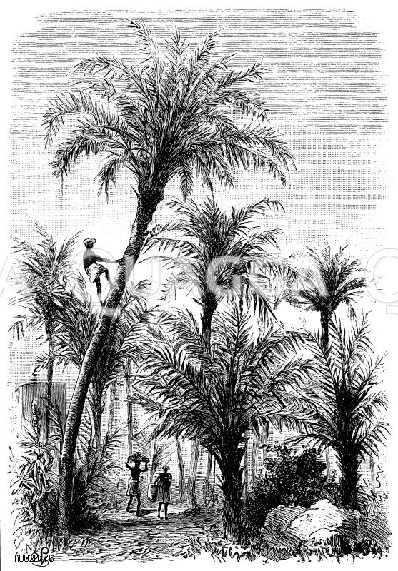 Dattelpalme: Zeichnung/Illustration/Holzstich – Phoenix dactilifera – Date palm –