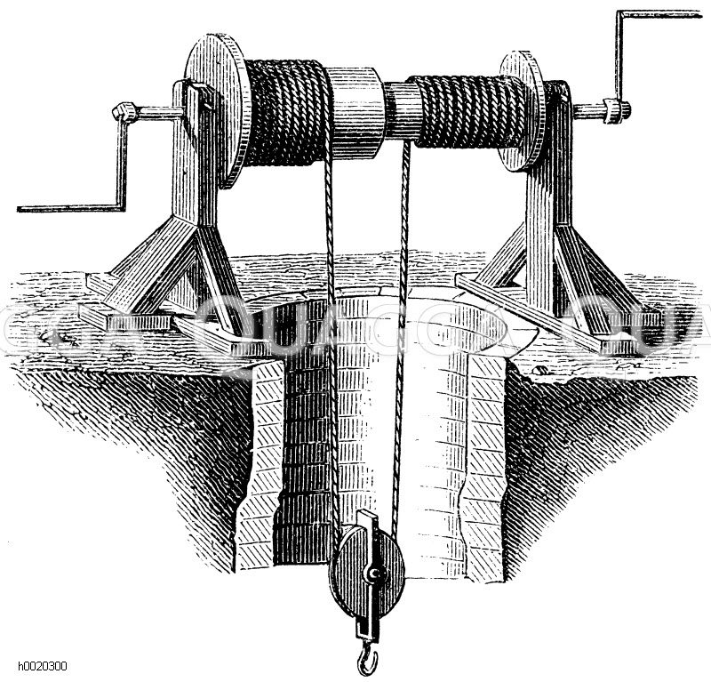 Differentialhaspel: Zeichnung/Illustration/Holzstich – – Differential reel –