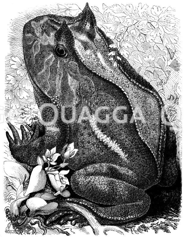 Buchstabenkröte: Zeichnung/Illustration/Holzstich – Ceratophrys Bojei – –