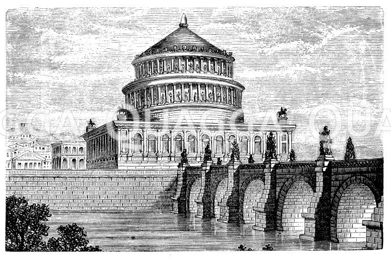 Grabmal des Hadrian: Zeichnung/Illustration/Holzstich – – Tomb of Hadrian – Tombeau d’Hadrien