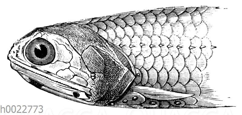 Leuchtsardine: Zeichnung/Illustration/Holzstich – Diaphus coeruleus – Blue Lanternfish – Diaphus coeruleus
