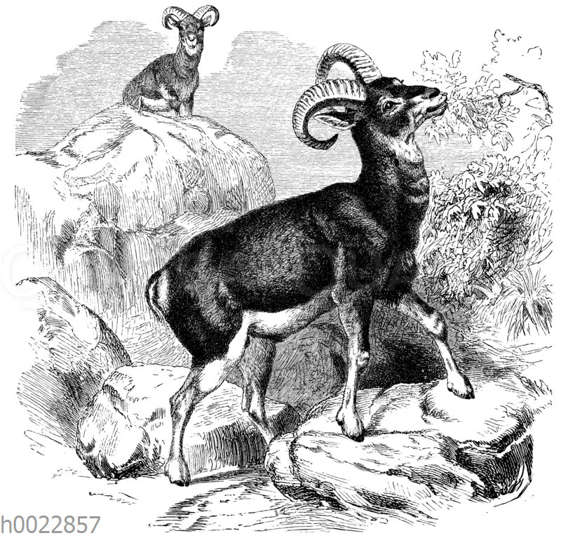 Mufflon: Zeichnung/Illustration/Holzstich – – –
