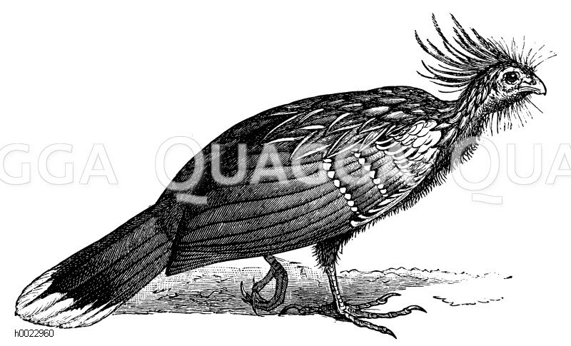 Schopfhuhn: Zeichnung/Illustration/Holzstich – Ophistocomus cristatus – –