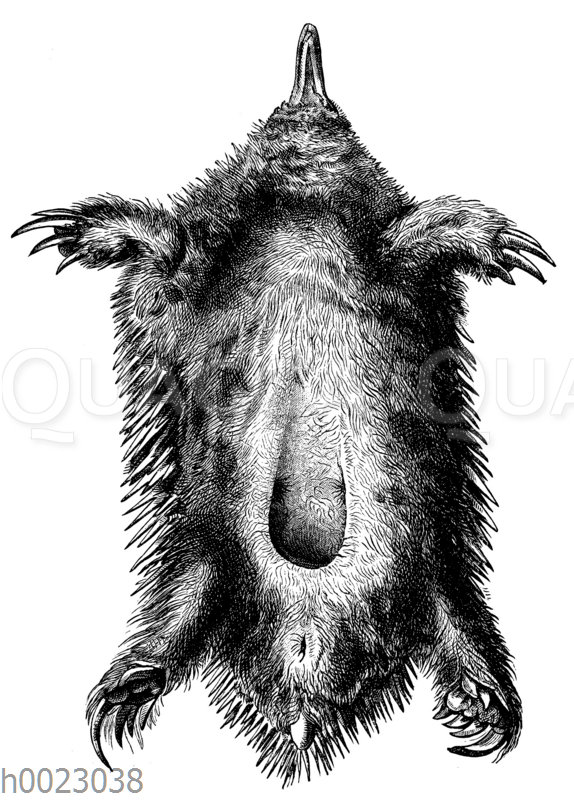 Ameisenigel, Unterseite eines Weibchens: Zeichnung/Illustration/Holzstich – Tachyglossus aculeatus – –