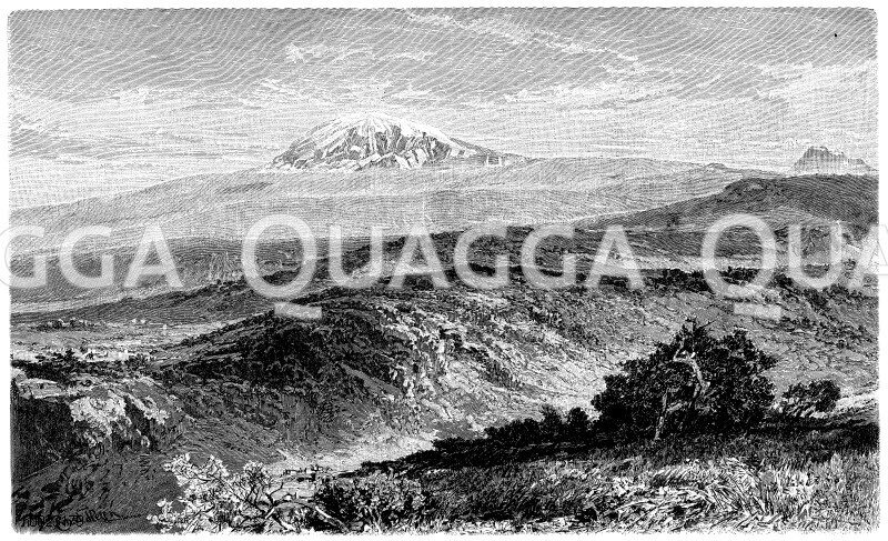 Kilimandscharo: Zeichnung/Illustration/Holzstich – – Kilimanjaro – Kilimandjaro