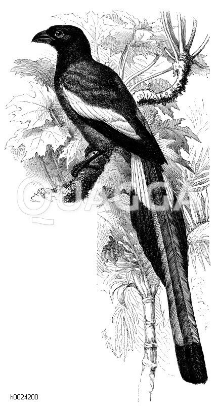 Rotri oder die wandernde Elster: Zeichnung/Illustration/Holzstich – Dendrocitta rufa oder Dendrocitta vagabunda – –