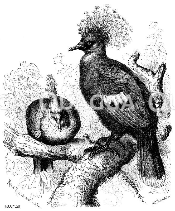 Fächertaube: Zeichnung/Illustration/Holzstich – Goura Victoriae – –
