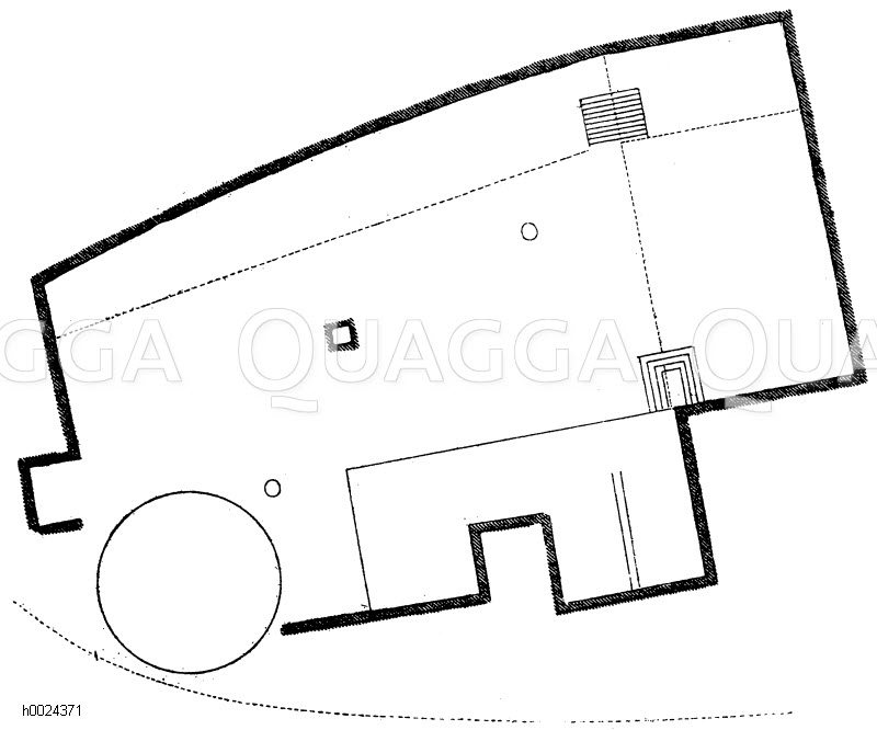 Überreste des alten Könighauses zu Itaka: Zeichnung/Illustration/ – – Remains of the old royal house at Itaka – Vestiges de l’ancienne maison royale d’Itaka