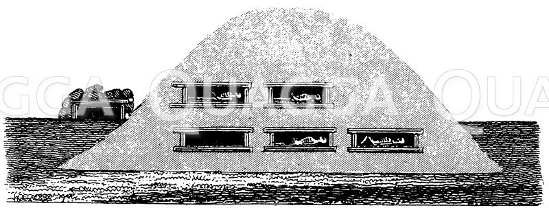 Grabmal auf den Orkaden: Zeichnung/Illustration/ – – Gravestone on the Arcades – pierre tombale sur les arcades
