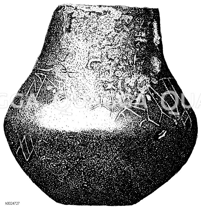 Denkmäler des Eiszeitalters, Bronzezeitalters, Eisenzeitalters: Runenurne: Zeichnung/Illustration/ – – –