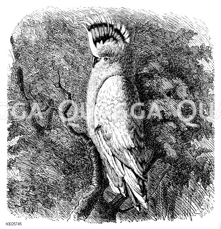Australischer Kakadu: Zeichnung/Illustration/Holzstich – – Australian Cockatoo –
