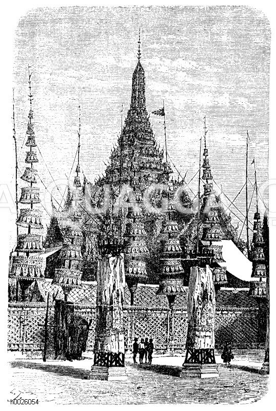 Grabpagade des Königes von Siam in Bangkok: Zeichnung/Illustration/Holzstich – – –