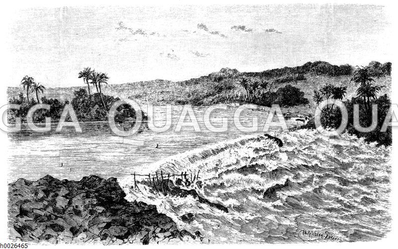 Siebente Stromschnelle der Stanleyfälle (Kongo): Zeichnung/Illustration/Holzstich – – –
