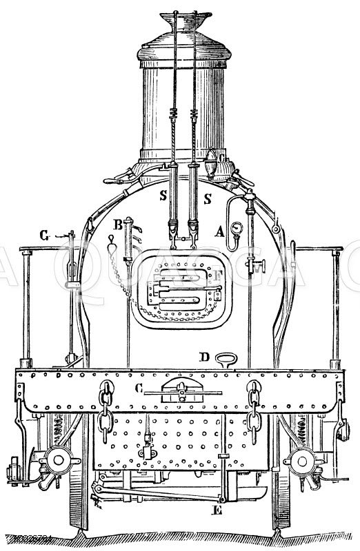 Lokomotive (Ansicht von hinten): Zeichnung/Illustration/Holzstich – – Locomotive (view from behind) – Locomotive (vue de derrière)