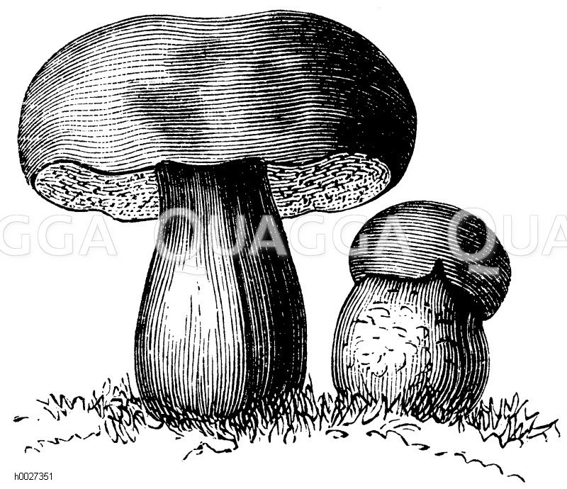 Pilz: Habichtsschwamm: Zeichnung/Illustration/Holzstich – – Mushroom: hawk sponge – Champignon: éponge de faucon