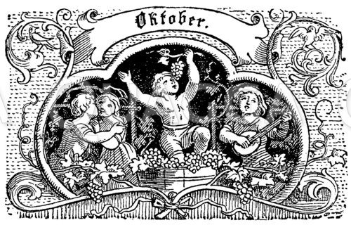 Vignette: Oktober: Zeichnung/Illustration/Holzstich – – –