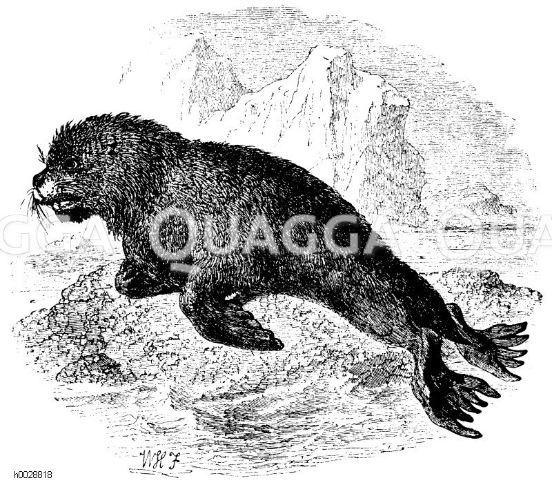 Löwenrobbe: Zeichnung/Illustration/Holzstich – Otaria Stelleri – –