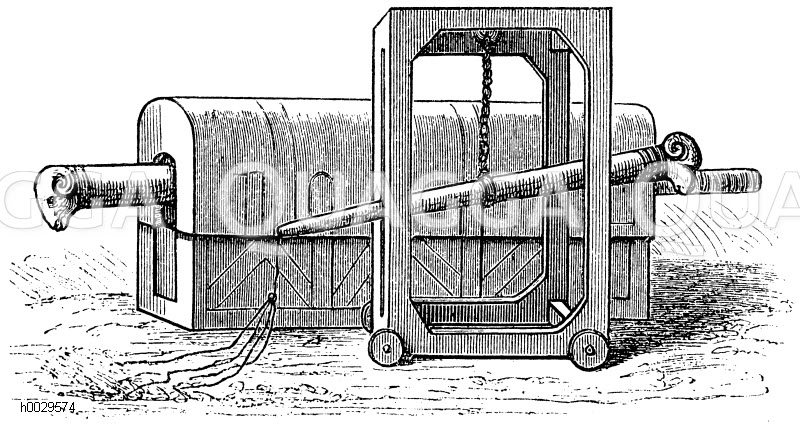Widder oder Sturmbock: Zeichnung/Illustration/Holzstich – – Aries or battering ram – Bélier ou bélier