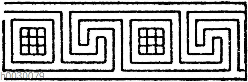 Unsymmetrische oder laufende Mäander nach griechischen Vasenmalereien: Geschmückte Mäander (durch Rosetten, Sternen etc. urterbrochen).: Zeichnung/Illustration/Holzstich – – –