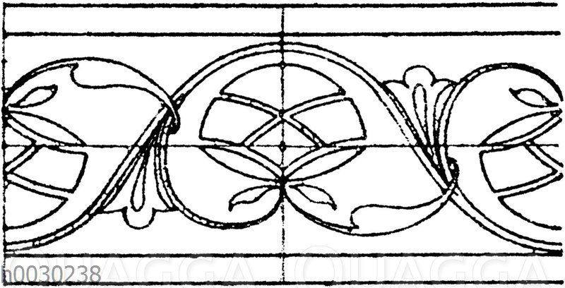 Blattbänder und Rankenbänder: Bordüren von persischen Metallgefäßen. (Racinet): Zeichnung/Illustration/Holzstich – – –