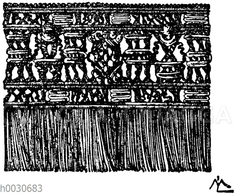 Geknüpfte Spitze mit Fransen. (Sog. Macraméspitze). 19. Jahrhundert.: Zeichnung/Illustration/Holzstich – – –