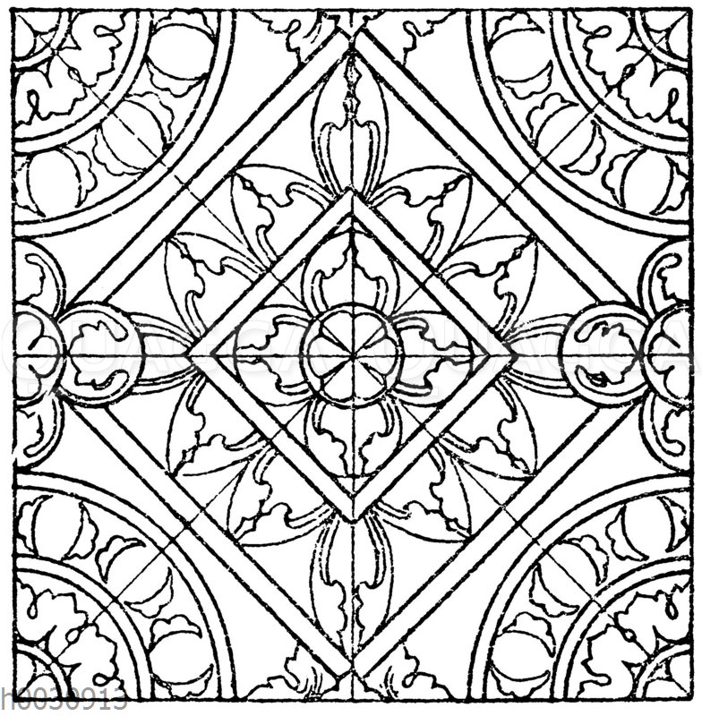 Glasmalereimuster (Teppiche) aus der romanischen und frühgotischen Zeit. Kathedrale zu Soissons.: Zeichnung/Illustration/Holzstich – – –