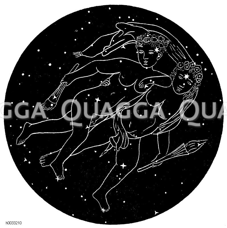 Sternbild der Zwillinge: Zeichnung/Illustration/Holzstich – – –
