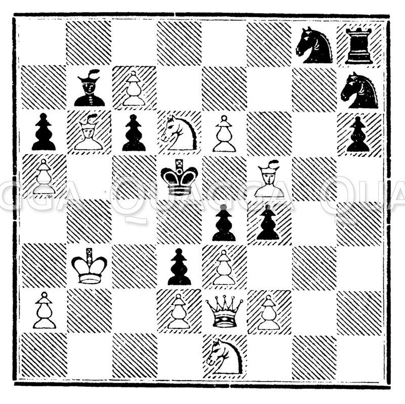 Schachspiel: Matt in fünf Zügen: Zeichnung/Illustration/Holzstich – – –