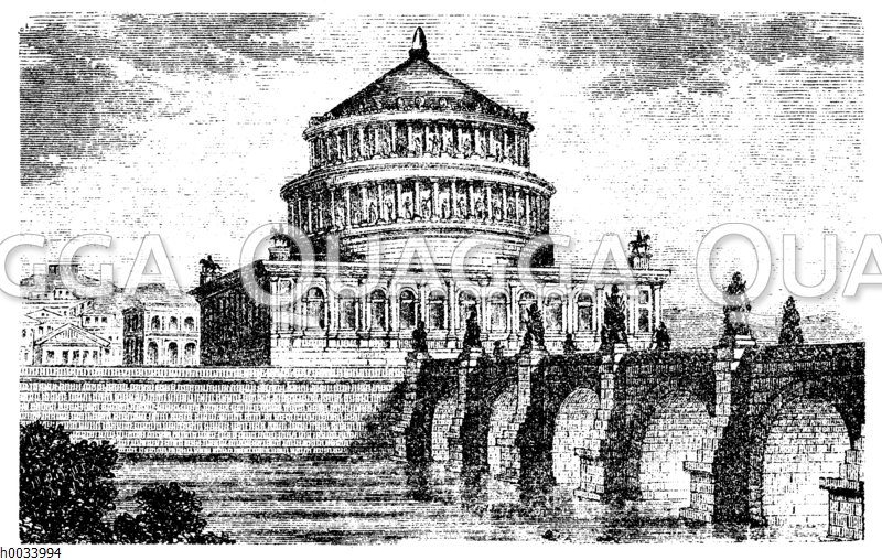 Grabmal Hadrians in Rom: Zeichnung/Illustration/Holzstich – – Tomb of Hadrian in Rome – Tombeau d’Hadrien à Rome