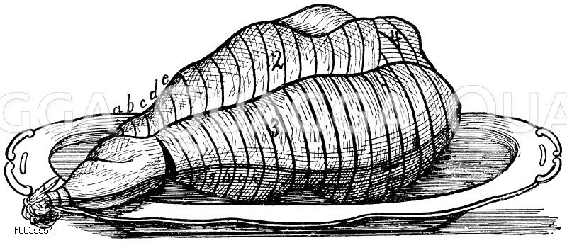 Kalbskeule: Zeichnung/Illustration/Holzstich – – veal – veau