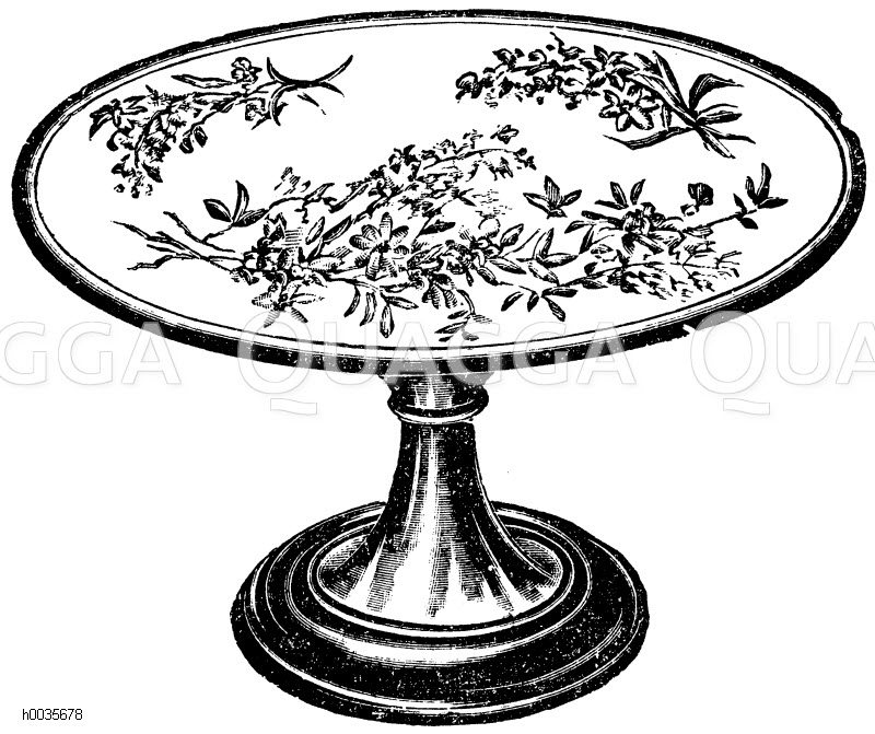 Tortenplatte: Zeichnung/Illustration/Holzstich – – –
