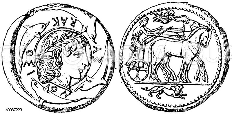 Tetradrachmon von Syrakus: Zeichnung/Illustration/Holzstich – – Tetradrachmon of Syracuse – Tétradrachmon de Syracuse