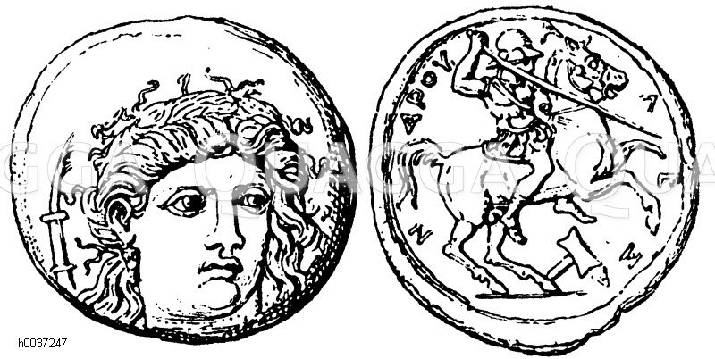 Didrachmon des Alexandros von Pherai: Zeichnung/Illustration/Holzstich – – Didrachmon of Alexandro of Pherai – Didrachmon d’Alexandro de Phéraï