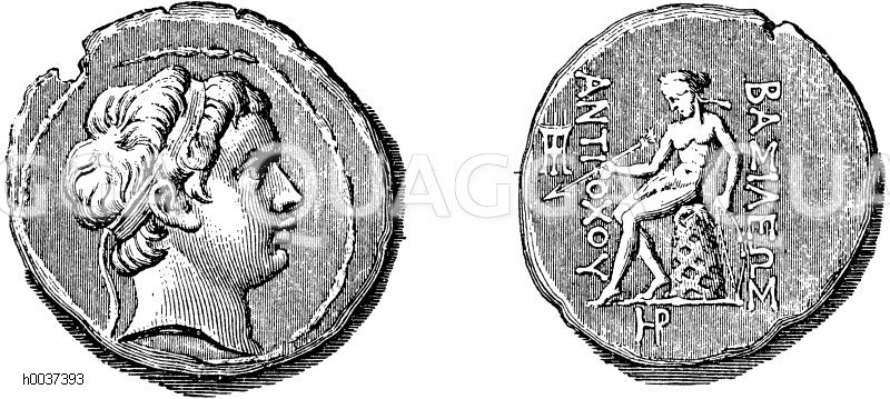Münze Antiochus‘ III. von Syrien. Nach Mionnet: Zeichnung/Illustration/Holzstich – – Coin Antiochus III of Syria. According to Mionnet – Pièce Antiochus III de Syrie. A Mionnet