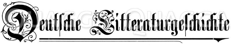 Schriftzug: Deutsche Literaturgeschichte: Zeichnung/Illustration/Holzstich – – –