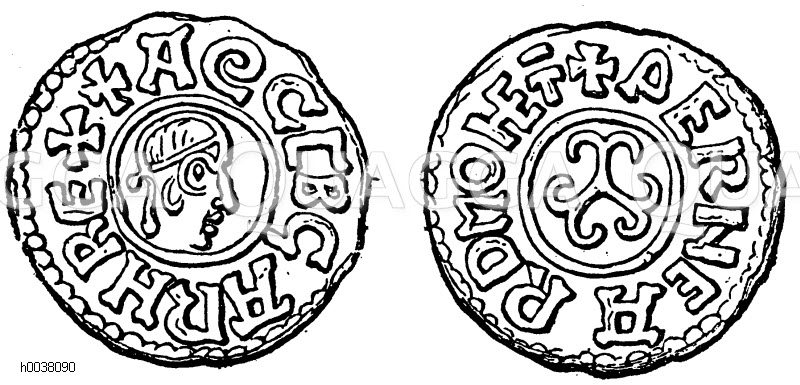 Münze König Egberts von Wesser. Nach Green: Zeichnung/Illustration/Holzstich – – –