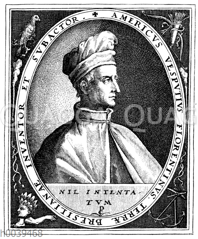Amerigo Vespucci: Zeichnung/Illustration/Holzstich – – Amerigo Vespucci. After a copperplate engraving –