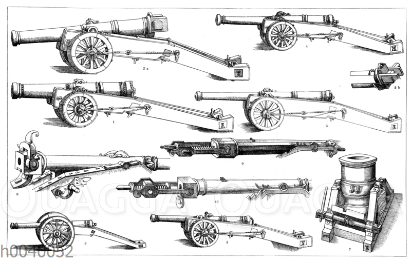 Typen der Artillerie um die Mitte des 16. Jahrhunderts: Zeichnung/Illustration/Holzstich – – –