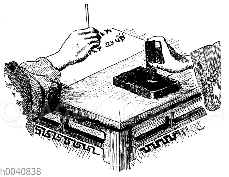 Schreiben in China, chinesische Schriftzeichen: Zeichnung/Illustration/ – – –