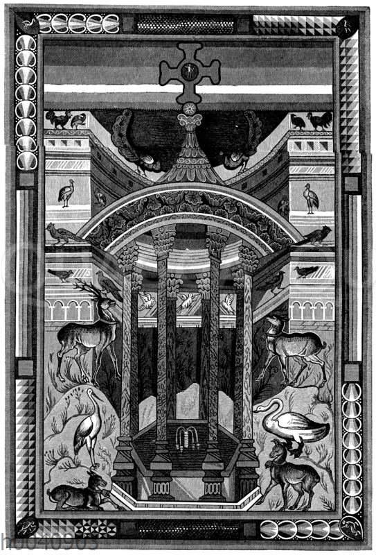 Miniatur in einem Evangelienbuch Karls des Großen: Zeichnung/Illustration/Holzstich – – –