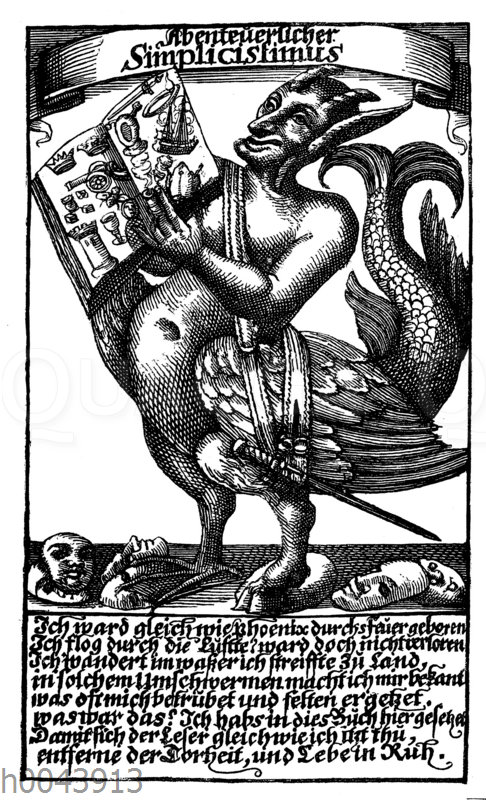 Titelkupfer des ersten Drucks des Simplicissimus vom Jahre 1669: Zeichnung/Illustration/Holzstich – – –