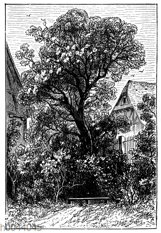 Holunderbusch im Pfarrgarten von Sessenheim: Zeichnung/Illustration/Holzstich – – –