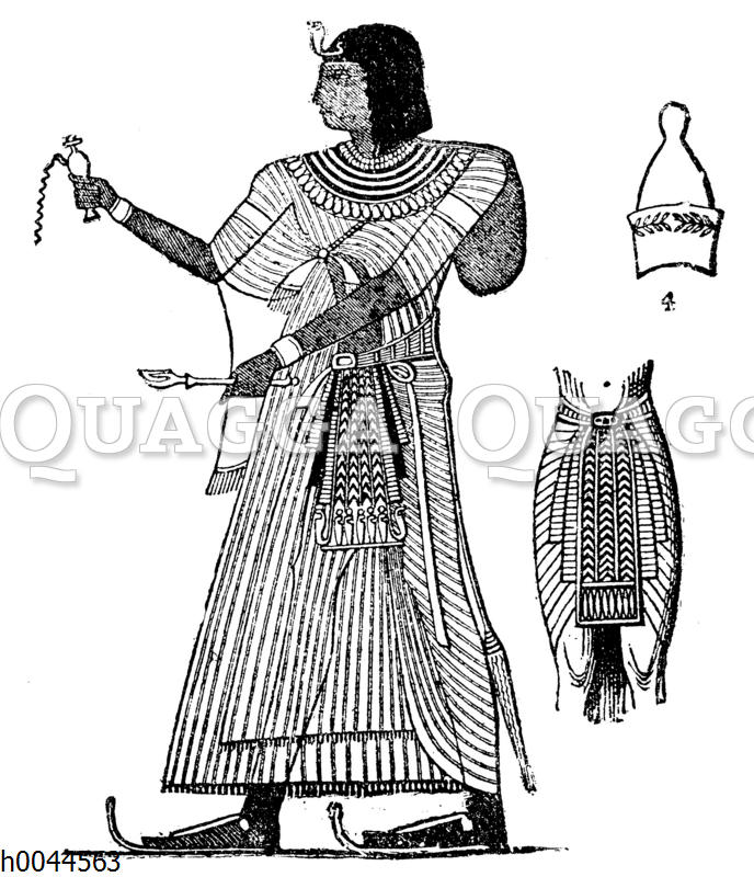 Kleidung des Pharao: Zeichnung/Illustration/Holzstich – – –